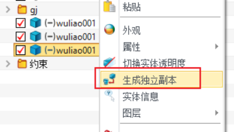 - 要创建刚体的组件,要独立唯一。创建之前如果有名称一样的,先生成独立副本,再重命名为想设置的名称后,需要创建机电建模数据的组件,名称不可以相同。组件检查完成后,可以创建刚体