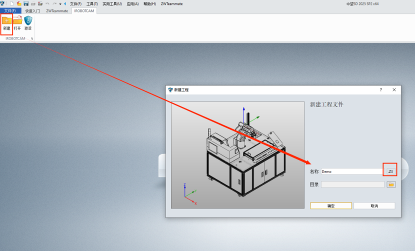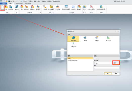 1.1新建工程_从中望菜单,注意格式要为.Z3